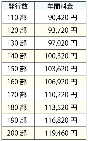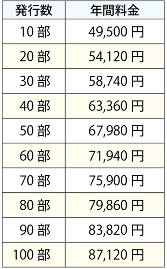 発行部数内であれば複数版の選択も無料で可能。例えば、部数100部のうち「税務版」を70部、「中小税務版」を30部とするなど、顧問先に合った内容のものを配布できます(10部単位)。